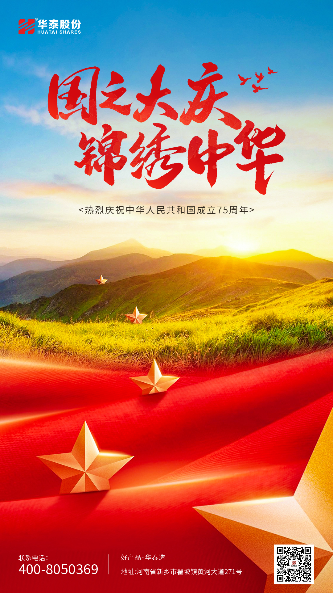 2024年10月1日是中華人民共和國成立75周年紀(jì)念日。75年披荊斬棘,75年風(fēng)雨兼程,中國共產(chǎn)黨團(tuán)結(jié)帶領(lǐng)億萬人民創(chuàng)造了新中國波瀾壯闊、驚天動地的歷史。 盛世華誕 舉國同慶 舉國同慶,繁花似錦 江山如畫,躬逢盛世 盛世華章,榮光璀璨 九州同慶,四海升平 河南華泰石化裝備股份有限公司 祝大家國慶快樂!